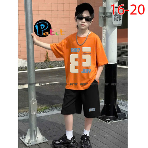 A484251 - Bộ tay ngắn bé trai, form to cực ngầu thun cotton 4c in chữ R_Size 16-20