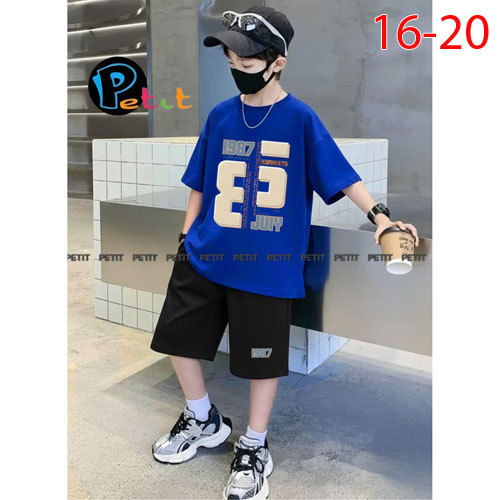 A484253 - Bộ tay ngắn bé trai, form to cực ngầu thun cotton 4c in chữ R_Size 16-20