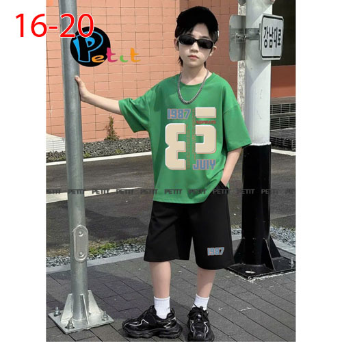 A484258 - Bộ tay ngắn bé trai, form to cực ngầu thun cotton 4c in chữ R_Size 16-20