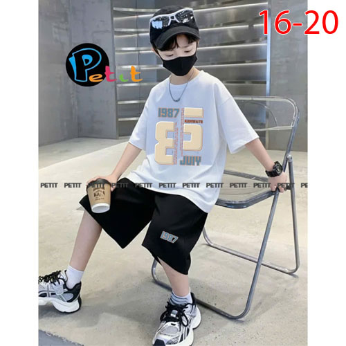 A484262 - Bộ tay ngắn bé trai, form to cực ngầu thun cotton 4c in chữ R_Size 16-20