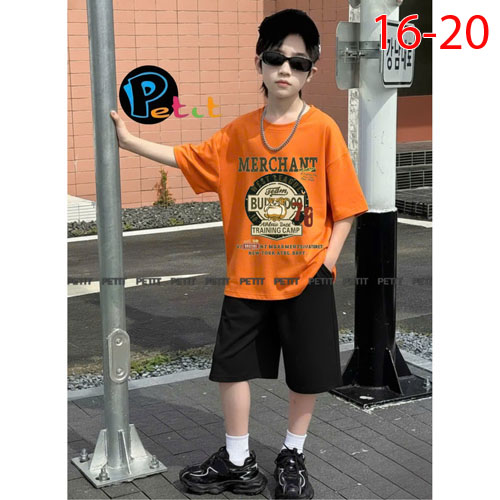 A484264 - Bộ tay ngắn bé trai, form to cực ngầu thun cotton 4c in chữ R_Size 16-20