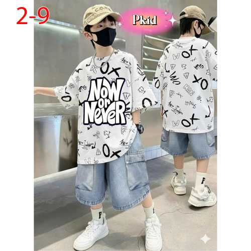 A485663 - Sét rin bé trai Sang Trọng Lịch Lãm cho các bé trai áo thun in Now Never_Size 2-9