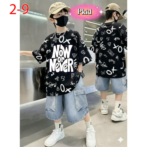 A485669 - Sét rin bé trai Sang Trọng Lịch Lãm cho các bé trai áo thun in Now Never_Size 2-9