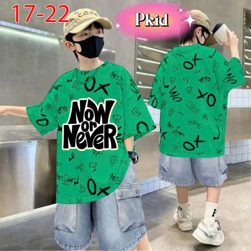 A485682 - Sét rin bé trai Sang Trọng Lịch Lãm cho các bé trai áo thun in Now Never_Size 17-22