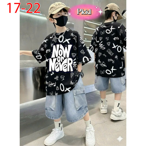 A485684 - Sét rin bé trai Sang Trọng Lịch Lãm cho các bé trai áo thun in Now Never_Size 17-22