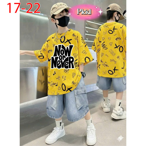 A485685 - Sét rin bé trai Sang Trọng Lịch Lãm cho các bé trai áo thun in Now Never_Size 17-22