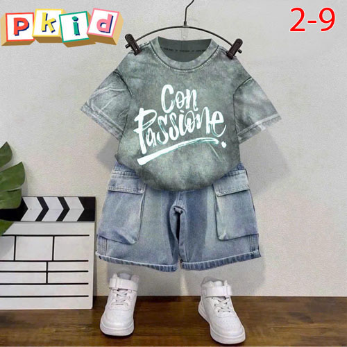 A485765 - Sét rin bé trai Sang Trọng Lịch Lãm cho các bé trai in áo thun cotton wash in chữ quần rin