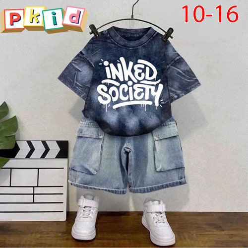 A485775 - Sét rin bé trai Sang Trọng Lịch Lãm cho các bé trai in áo thun cotton wash in chữ quần rin