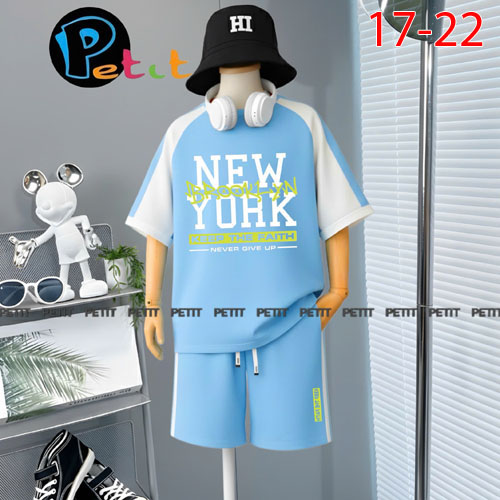 A486207 - Bộ thun bé trai áo tay ngắn may phối viền cổ quần lững cực cool in New York xe hơi_Size 17