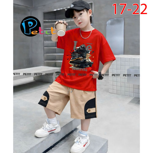 A491192 - Bộ phong cách cho bé trai áo tay ngắn quần lững thun cotton_Size 17-22