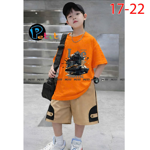 A491193 - Bộ phong cách cho bé trai áo tay ngắn quần lững thun cotton_Size 17-22