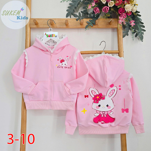 A492880 - Áo khoác phối ren xịn cool in thỏ trước sau xinh cho bé gái in thỏ cài hoa_Size 3-10