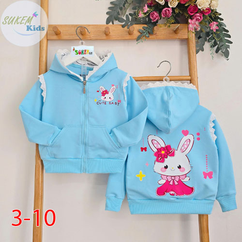 A492882 - Áo khoác phối ren xịn cool in thỏ trước sau xinh cho bé gái in thỏ cài hoa_Size 3-10