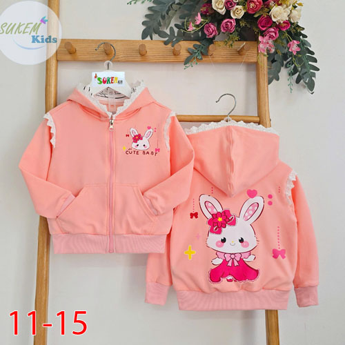 A492886 - Áo khoác phối ren xịn cool in thỏ trước sau xinh cho bé gái in thỏ cài hoa_Size 11-15