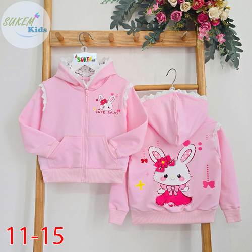 A492887 - Áo khoác phối ren xịn cool in thỏ trước sau xinh cho bé gái in thỏ cài hoa_Size 11-15