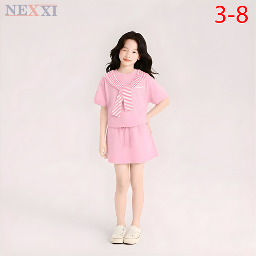 A493093 - Nexxi set váy siêu hot áo chất cotton co giãn 4C in chữ phối dây vai sọc borip chân váy th