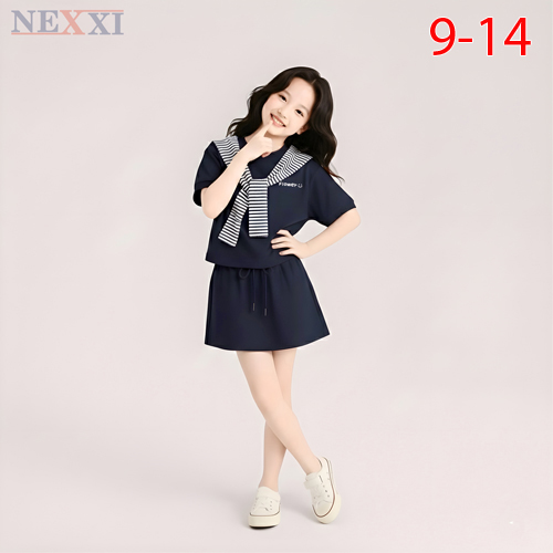 A493095 - Nexxi set váy siêu hot áo chất cotton co giãn 4C in chữ phối dây vai sọc borip chân váy th