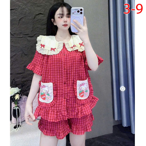 A493574 - Sét xinh rung rinh may trên chất vải caro coton cổ áo phối ren xinh sắn_Size 3-9