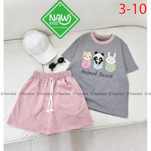 A493634 - Bộ short bé gái style basic thun cotton 4c in mèo gấu thỏ_Size 3-10