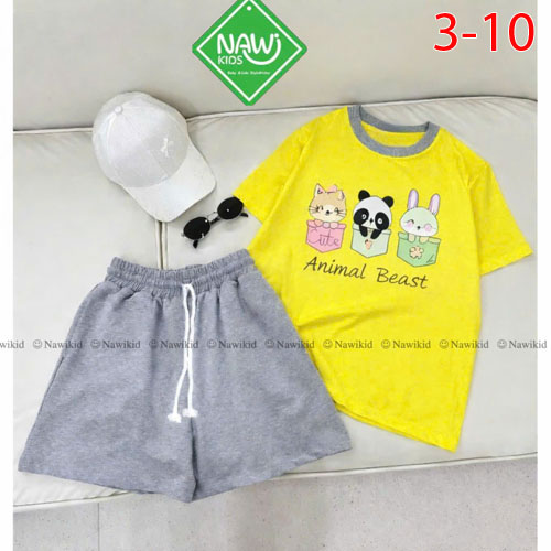A493637 - Bộ short bé gái style basic thun cotton 4c in mèo gấu thỏ_Size 3-10