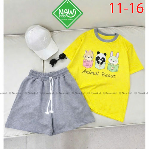 A493638 - Bộ short bé gái style basic thun cotton 4c in mèo gấu thỏ_Size 11-16