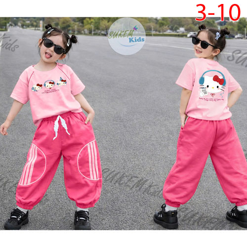 A494184 - Bộ jogger áo may ngắn tay may rút dây 2 bên in kitty quần jogger bo cắt phối lé chạy dây v