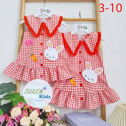 A495819 - Đầm tay cánh tiên dòng hàng cao cấp cho bé ngày hè phối karo cổ nhún bèo tùng dáng xoè đuô