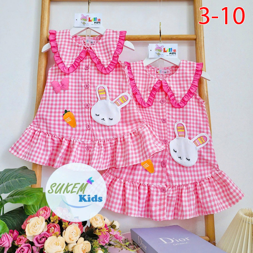 A495821 - Đầm tay cánh tiên dòng hàng cao cấp cho bé ngày hè phối karo cổ nhún bèo tùng dáng xoè đuô