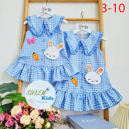 A495822 - Đầm tay cánh tiên dòng hàng cao cấp cho bé ngày hè phối karo cổ nhún bèo tùng dáng xoè đuô