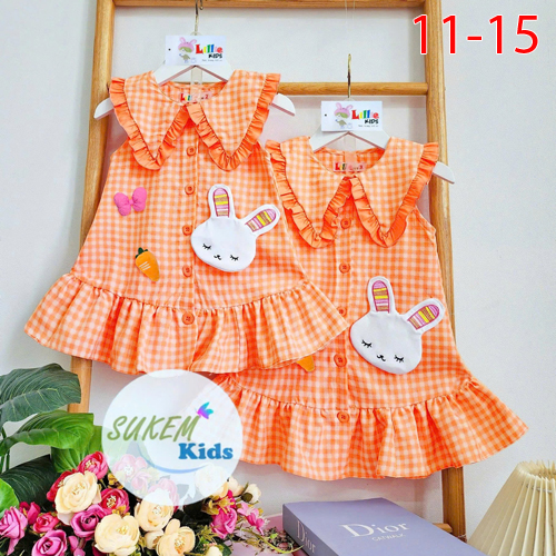 A495826 - Đầm tay cánh tiên dòng hàng cao cấp cho bé ngày hè phối karo cổ nhún bèo tùng dáng xoè đuô