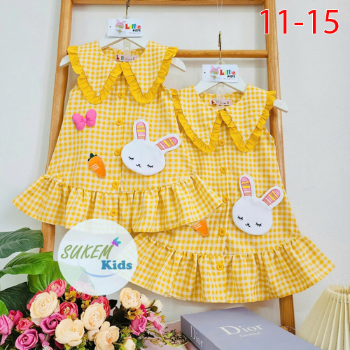 A495829 - Đầm tay cánh tiên dòng hàng cao cấp cho bé ngày hè phối karo cổ nhún bèo tùng dáng xoè đuô