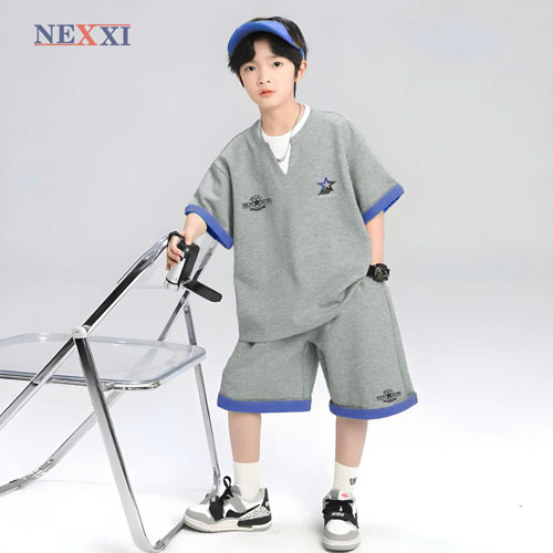 A496273 - Nexxi set thề thao bé trai vải thun cotton 4C xịn sò set lửng form rộng, phối màu in logo_