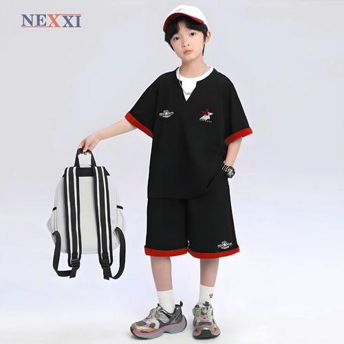 A496274 - Nexxi set thề thao bé trai vải thun cotton 4C xịn sò set lửng form rộng, phối màu in logo_