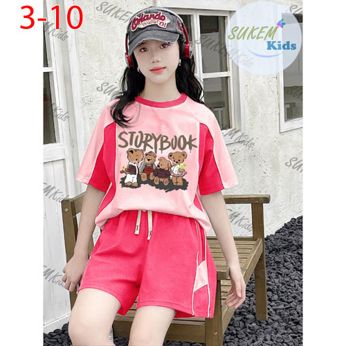 A500338 - Bộ short thể thao cho bé gái thun cotton 4c áo may viền cổ và tay cắt rã thể thao ép gấu q