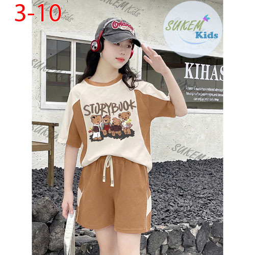 A500342 - Bộ short thể thao cho bé gái thun cotton 4c áo may viền cổ và tay cắt rã thể thao ép gấu q