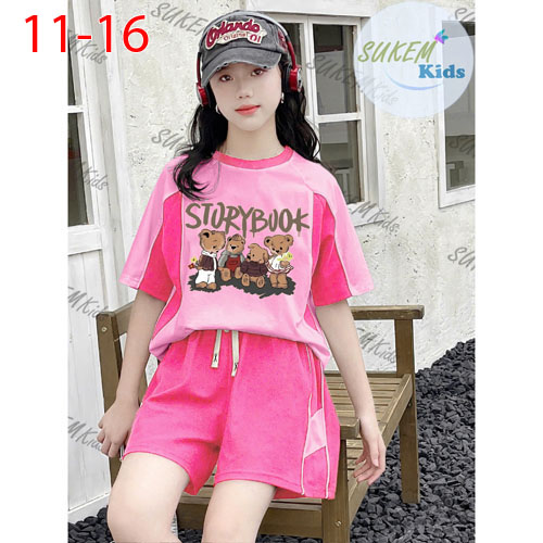 A500349 - Bộ short thể thao cho bé gái thun cotton 4c áo may viền cổ và tay cắt rã thể thao ép gấu q