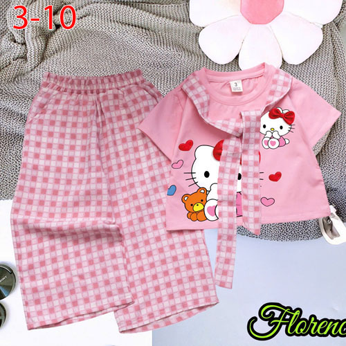 A500609 - Set quần dài caro áo Chất thun cotton in Kitty phối dây caro quần kate caro cotton_Size 3-