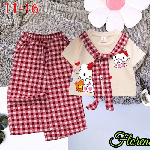 A500613 - Set quần dài caro áo Chất thun cotton in Kitty phối dây caro quần kate caro cotton_Size 11
