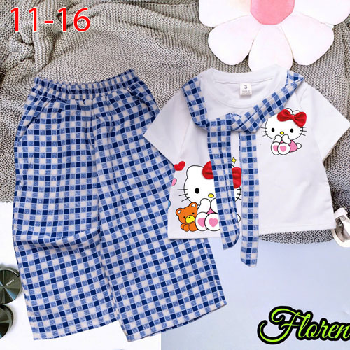 A500615 - Set quần dài caro áo Chất thun cotton in Kitty phối dây caro quần kate caro cotton_Size 11
