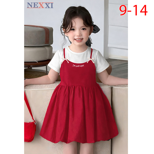 A500698 - Nexxi set đầm 2 món Áo thun babytee co dãn 4C đầm bí vải gió nhăn lót lụa_Size 9-14
