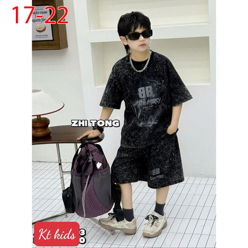 A501263 - Bộ thun Wash đá siêu ngầu siêu cá tính cho bé trai thun cotton co giãn 4c_Size 17-22