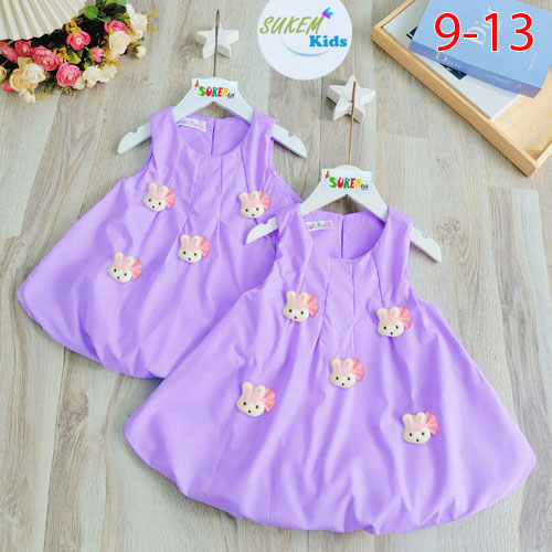 A501530 - Đầm may nhún ly tùng bí 2 lớp đính trái dâu và thỏ vịt bông siêu cute vải thun cotton_Size