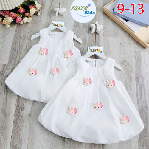 A501533 - Đầm may nhún ly tùng bí 2 lớp đính trái dâu và thỏ vịt bông siêu cute vải thun cotton_Size