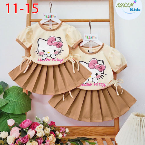 A502824 - Set ép Kitty cute áo rút dây với thiết kế chân váy xếp ly cực xinh_Size 11-15