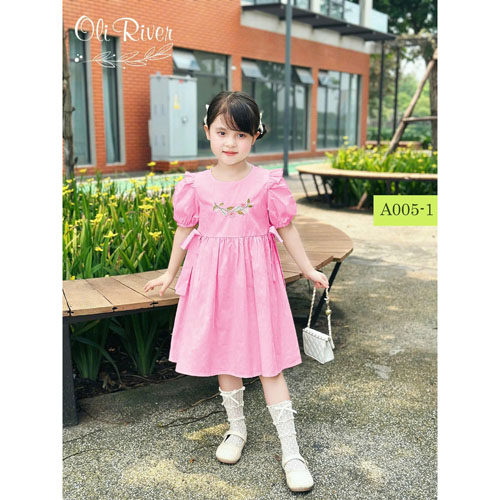 A503233 - Set váy bé gái cực xinh yêu phong cách hàn quốc dáng xòe phối nơ ở 2 bên eo hình thêu ở ng
