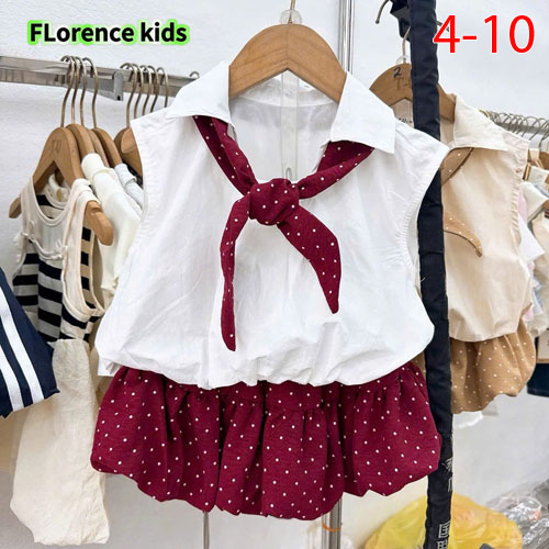 A503647 - (7/5)Set bé gái áo chất cotton 4c chân váy bí kèm chip trong , kèm khăn choàng tháo rời_Si