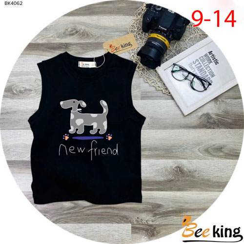 A504014 - Áo ba lỗ bé trai New friend hình cún cotton 4 chiều_Size 9-14