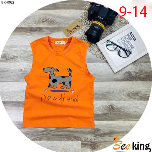 A504018 - Áo ba lỗ bé trai New friend hình cún cotton 4 chiều_Size 9-14