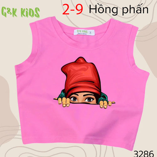 A504028 - Áo sát nách bé gái chất thun coton 4c in cô bé nón đỏ_Size 2-9