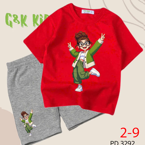 A504054 - Bộ áo phom rộng quần ngố bé gái chất thun coton 4c in cô bé mắt kính tóc xù_Size 2-9